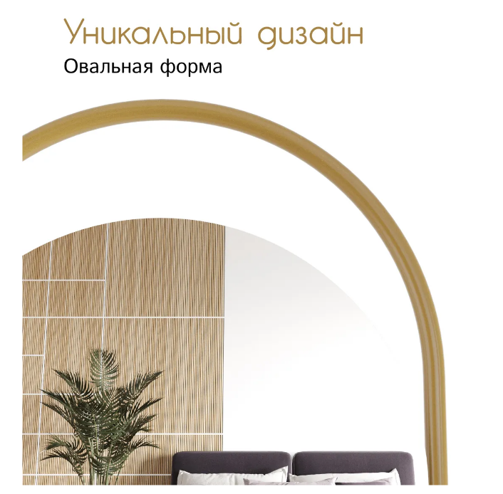 Зеркало «Queen». Артикул GMZ-01-1/2/3 Дизайнерское напольное зеркало в полный рост в металлической овальной раме ручной работы выполнено в минималистичном стиле. Простая изысканность форм и современный дизайн делает его уместным практически в любом интерьере. Оно может быть установлено в спальне, прихожей, гостиной, где за счёт своих внушительных размеров способно расширить пространство и создать иллюзию источника освещения. Зеркальное полотно изготовлено известным бельгийским производителем AGC и воплощает в себе старинные европейские традиции в совокупности с новейшими технологиями изготовления стекла. Наклон зеркала оптимальный фиксированный, что позволяет отражать любой рост.Характеристики:– профиль рамы – труба, диаметром 20 мм; – габариты – 1650х540х400 мм; – размер зеркального полотна – 1350х500 мм, толщина – 4 мм; – вес – 11 кг; – устойчивая двухслойная порошковая окраска; – возможные цвета – золотой, чёрный, белый.