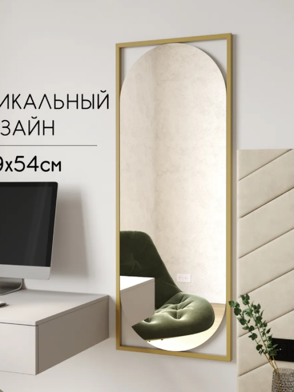 Дизайнерское настенное напольное зеркало Glass Memory Lustrous в металлической раме золотого цвета в Арзамасе
